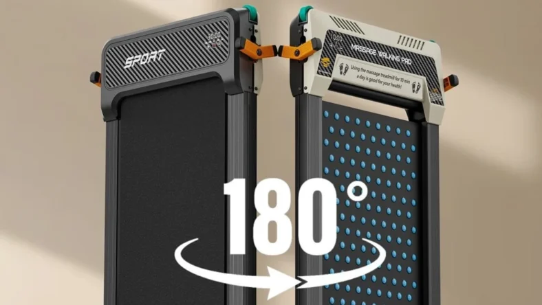 The space-saving treadmill also features an advanced shock absorption system to reduce the impact on knees and ankles, making it a joint-friendly option for fitness enthusiasts of all ages, and boasts dual screens to manage treadmill settings, workout data, and foot massage preferences. Additionally, the treadmill includes a pet walking mode, a plus for pet owners who want to treat their furry friend to an interactive indoor walk.