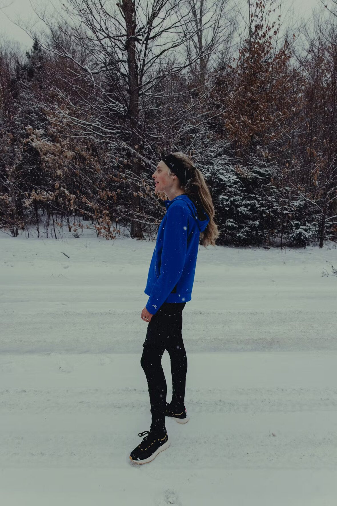 The DO Tracksmith Tights keep you warm without weighing you down during outdoor runs in even the coldest months. The insulated fabric blocks cold while still allowing breathability and full range of motion, making them ideal for chilly runs and outdoor training. These are the leggings we continue to grab even during near-freezing temperatures.