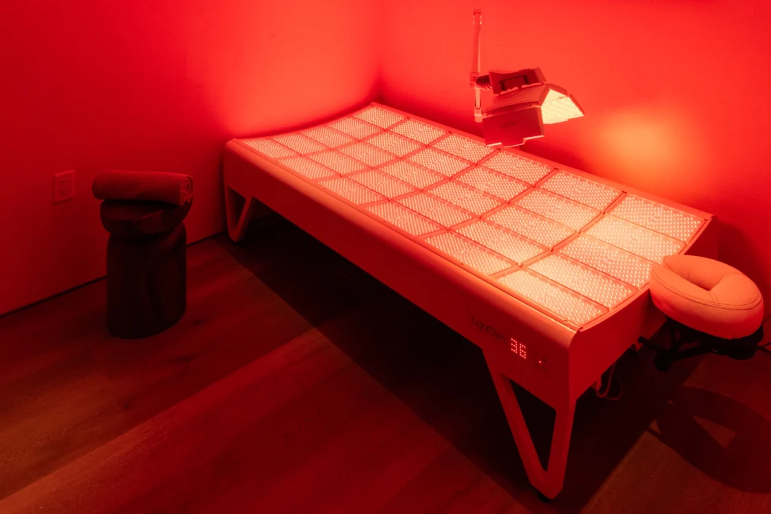- FDA-Cleared Red Light Therapy using multi-wavelength LED light to stimulate collagen production, reduce inflammation and promote recovery