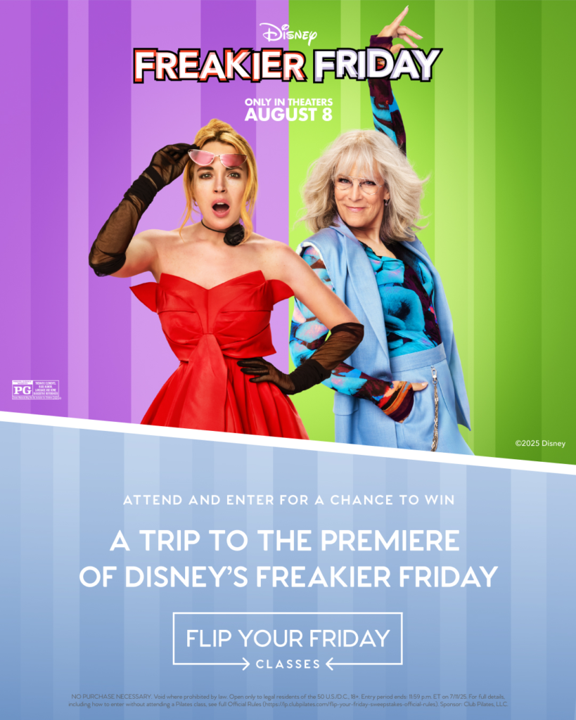 As part of the promotion, Club Pilates is launching a sweepstakes open to both members and non-members. Anyone who registers for and attends a “Freakier Friday” class on July 11 will be eligible to win a trip for two to the film’s world premiere in Los Angeles, including airfare and accommodations.