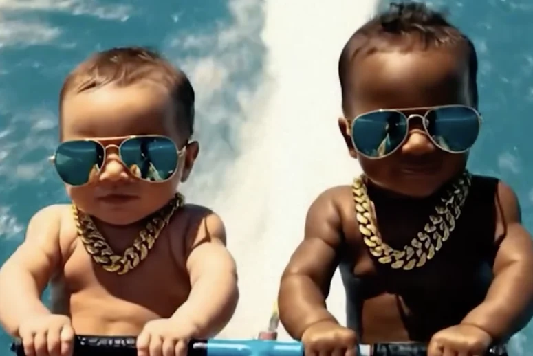 Ahead of its official campaign rollout this week, the luxury lifestyle and fitness brand shared a series of AI-generated teaser posts across its social media channels, including imagery such as gold chain–wearing babies water skiing and models strutting down a runway in silly inflatable costumes.