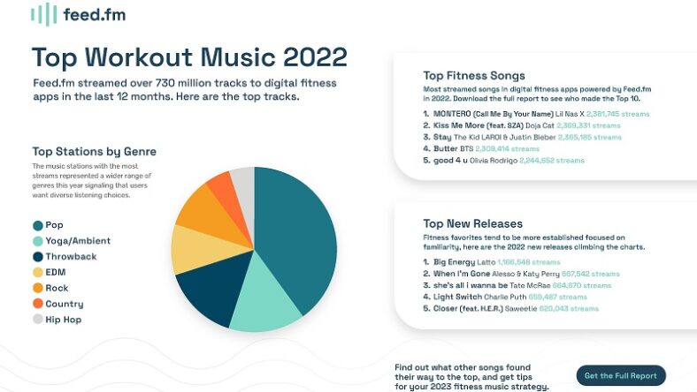 Feed.fm, an end-to-end music solution, has just released its 2022 Wellness & Workout Music Report after streaming an astounding 730+ million workout songs to 7.6 million unique digital fitness app users.